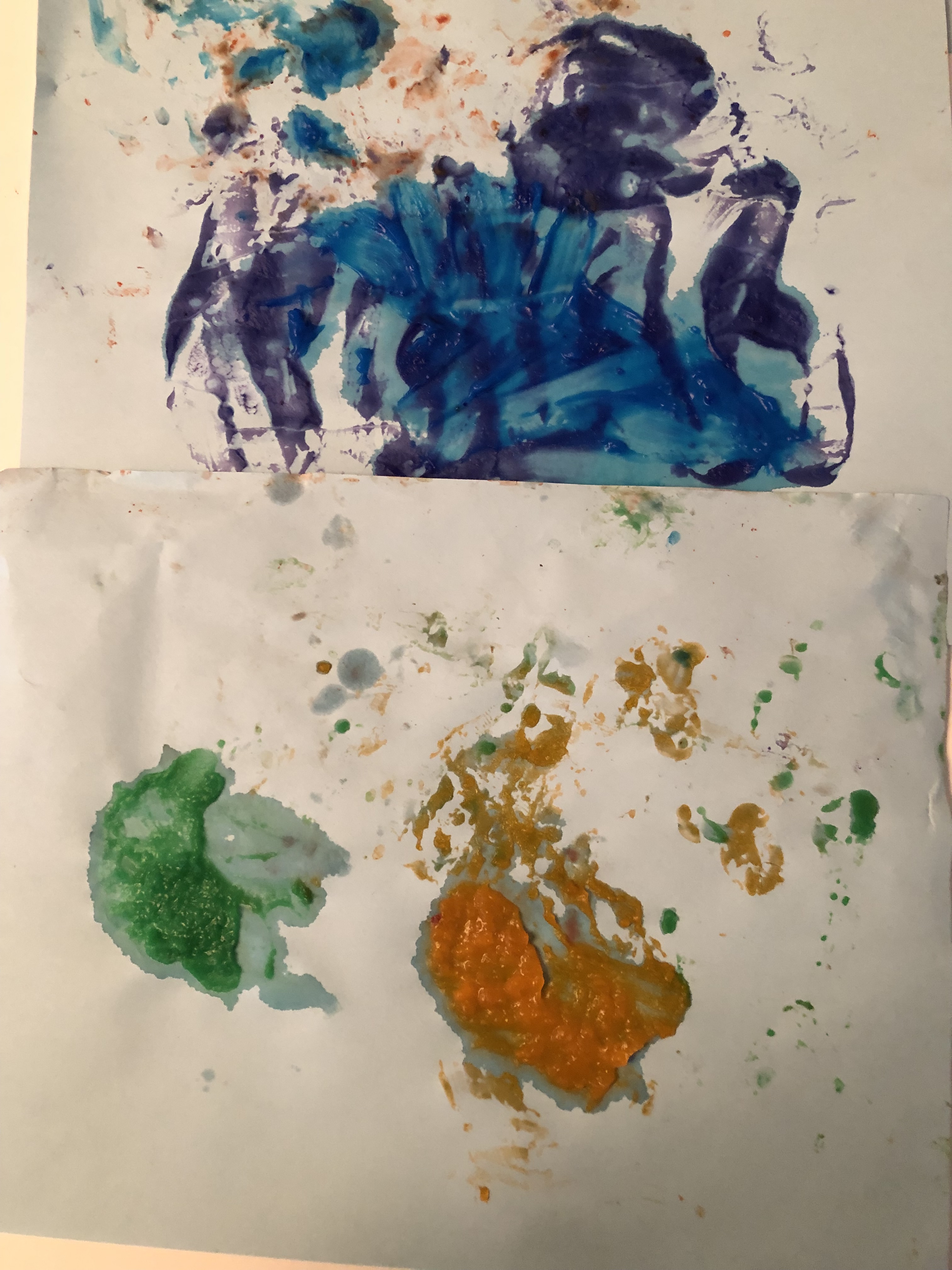 Some of these works of art won’t last long in themselves. Some papers get painted to holes because the babies are having such a good time. Sometimes you will get a piece that lasts that you might want to frame. You can always take photographs to build up your art collection that way and share with the parents.